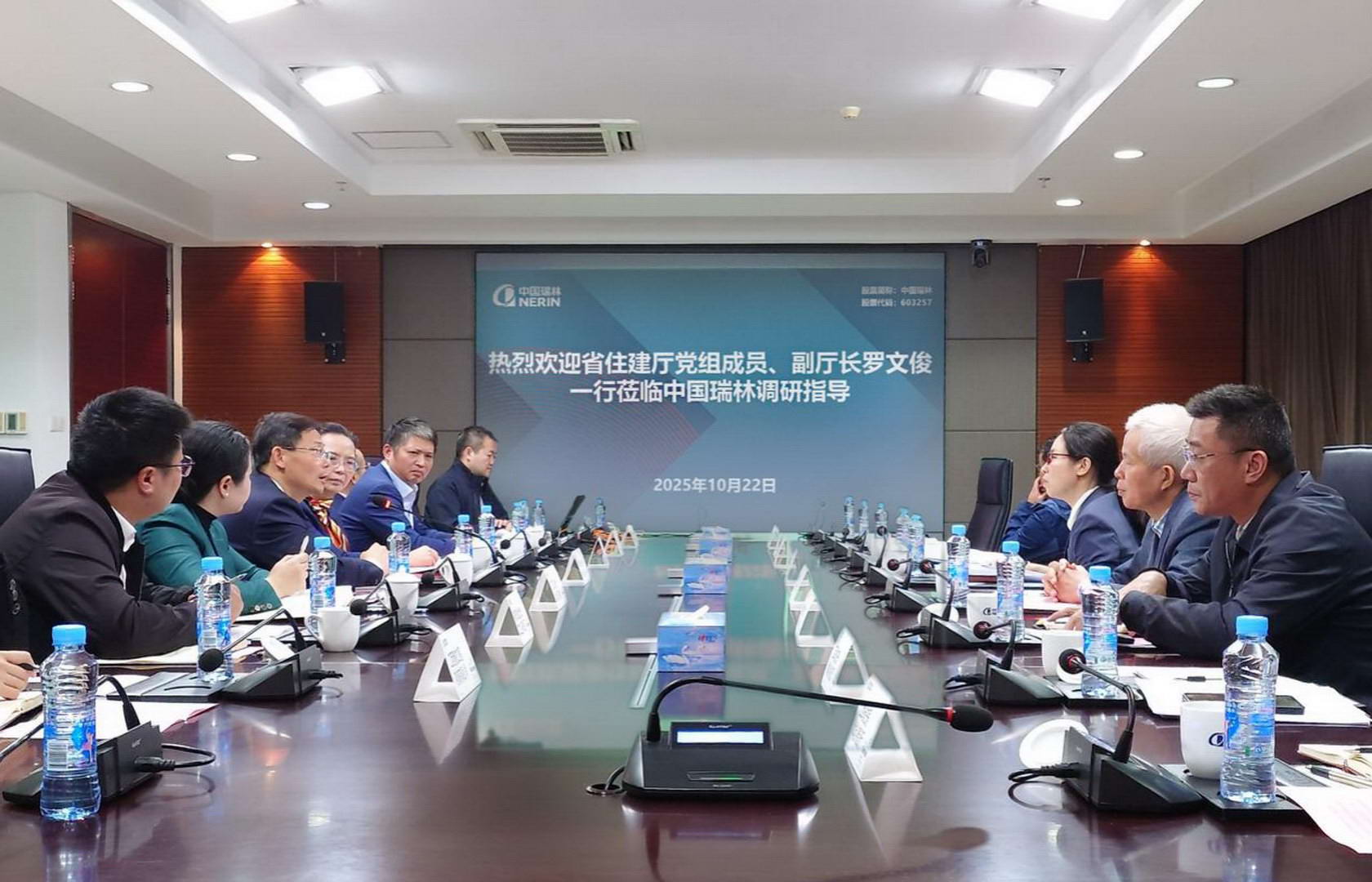 10月22日,江西省住建厅党组成员、副厅长罗文俊一行到中国瑞林调研,实地了解企业生产经营、科技创新、数智化建设等情况。中国瑞林党委书记、董事长、总经理吴润华热情接待了来访嘉宾。