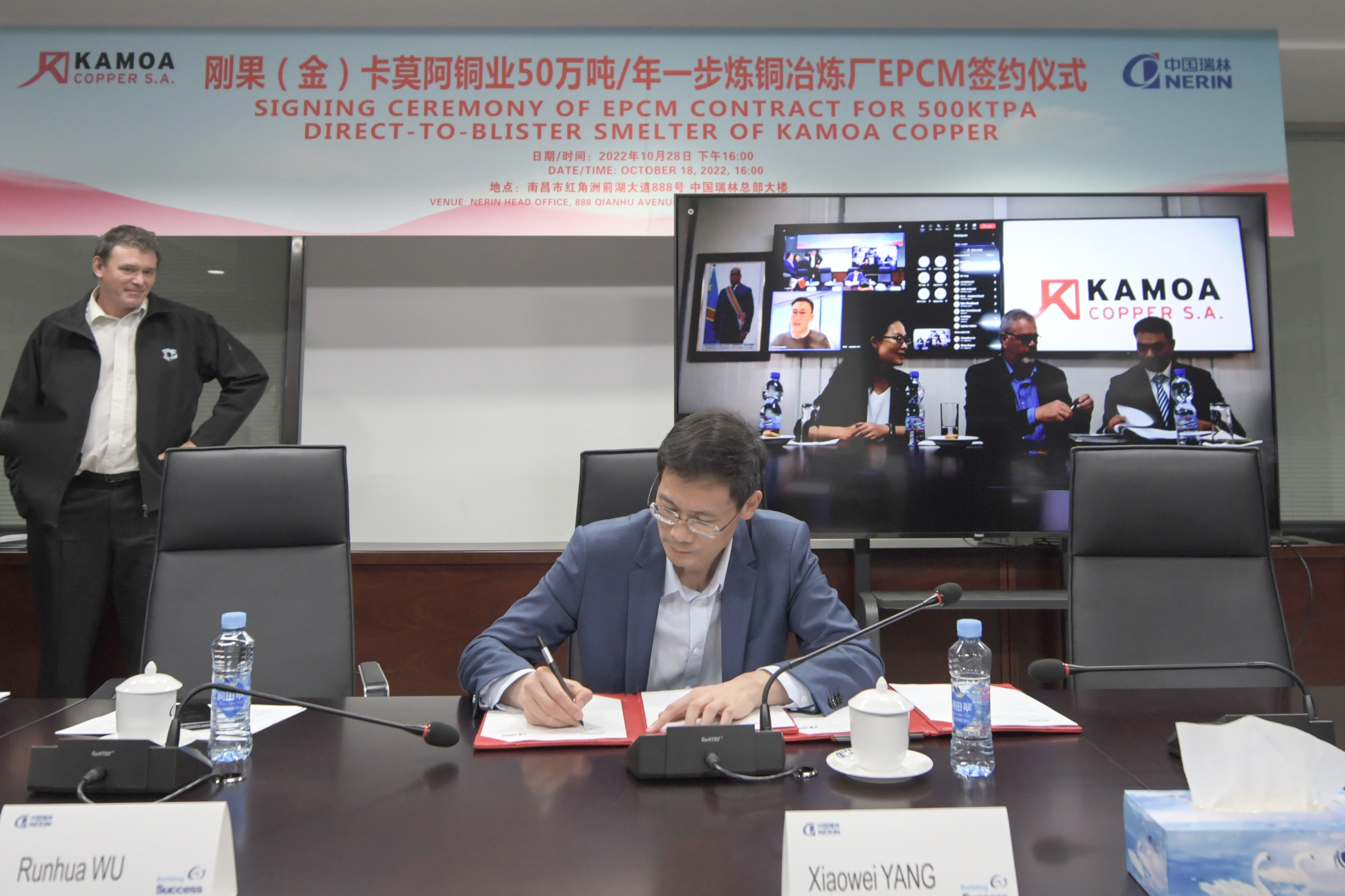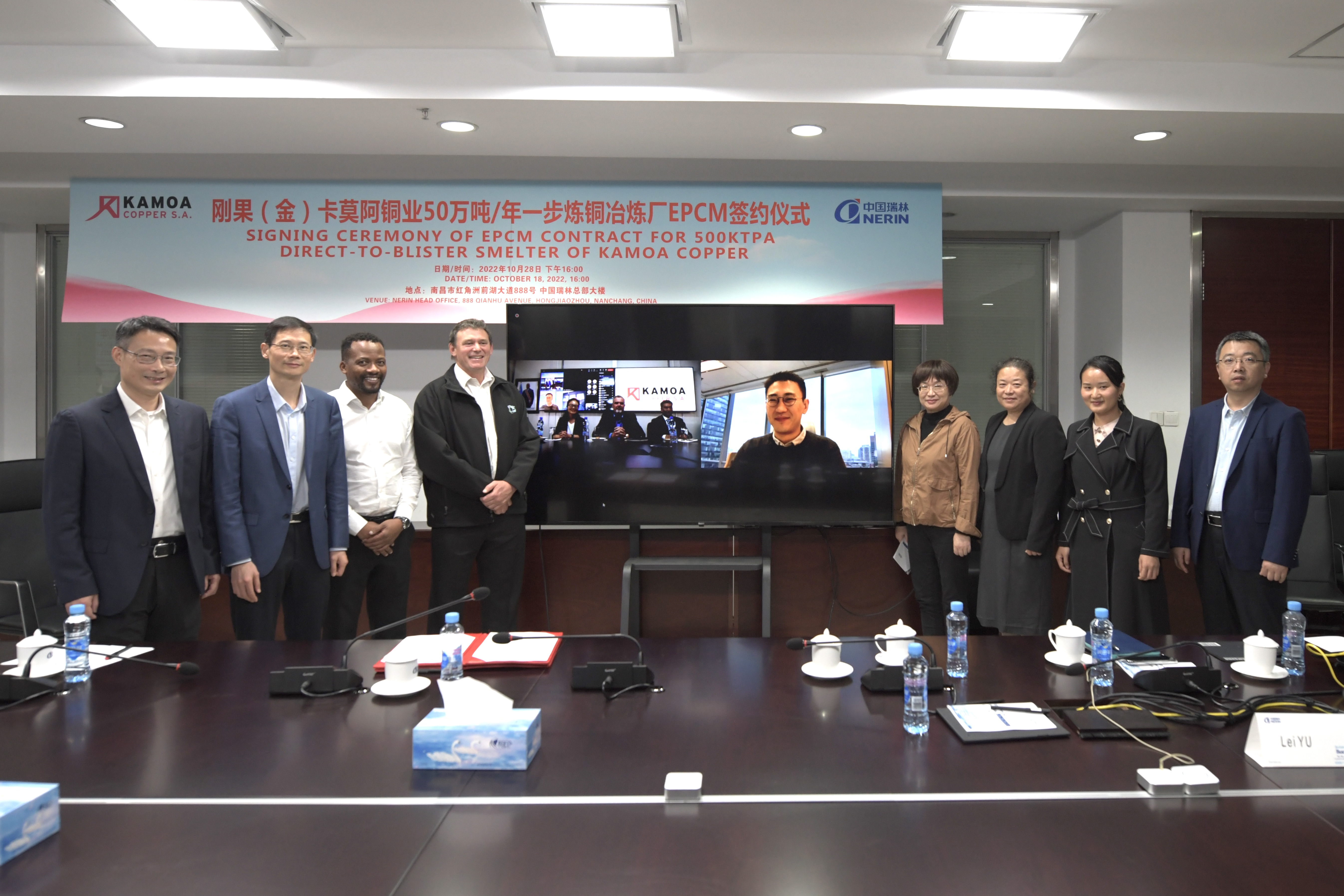 On October 28, 2022, China Nerin Engineering Co., Ltd. (hereinafter referred to as “China Nerin”) and Kamoa Copper S.A. in DRC (hereinafter referred to as “Kamoa Copper S.A.”), held an EPCM contract signing ceremony for the 500ktpa Kamoa-Kakula direct-to-blister copper smelting project at the headquarters of China Nerin in Nanchang, Jiangxi PRC, which furthers the cooperation of two parties on the basis of mutual trust established since last November when the basic engineering contract started.