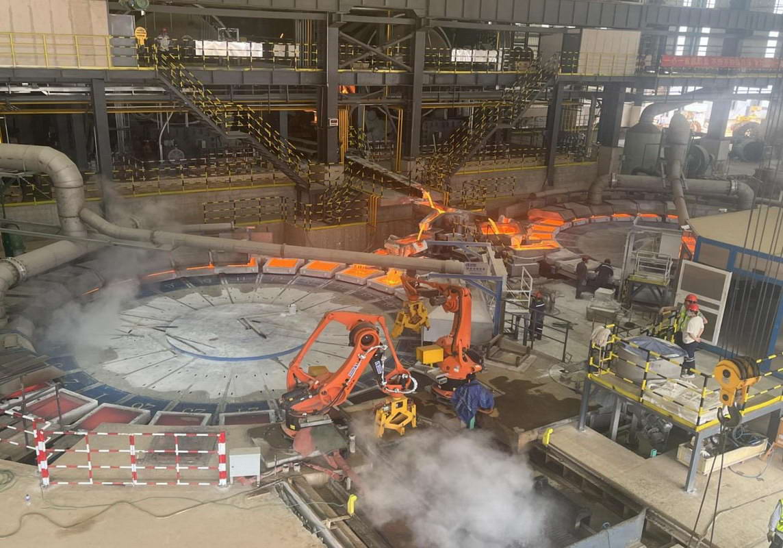Recently, the world's first twin-wheel 26-M casting machine with four casting ladles and plate takeoff robot designed and supplied by China Nerin has been successfully put into operation in the relocation project of Southwest Copper Smelter.