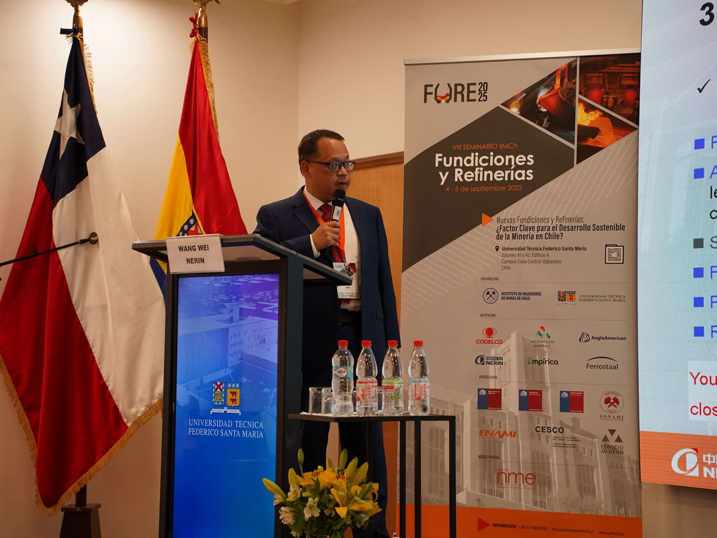 From September 4th to 5th (local time), the Seminario FURE 2025 (Seminario de Fundiciones y Refinerías/Seminar of Smelters and Refineries), organized by IIMCh (Instituto de Ingenieros de Minas de Chile/Institute of Engineers of Mines of Chile), was grandly held in Valparaíso, Chile. As Chile’s premier annual event for the copper industry, the seminar gathered renowned experts and corporate representatives from the copper industry all over the world to discuss cutting-edge technologies and development trends in the industry. Minister of the Ministry of Mines of the Republic of Chile, Madam Aurora Williams, attended the seminar and delivered a speech. General Manager of China Nerin Wu Runhua, accompanied by representatives from China Nerin South America branch, led a delegation to attend the seminar, and showcased China Nerin’s leading capabilities in the global copper smelting field through speeches, dialogues, and technical presentations, further consolidating the foundation of our in-depth cooperation with Chile.